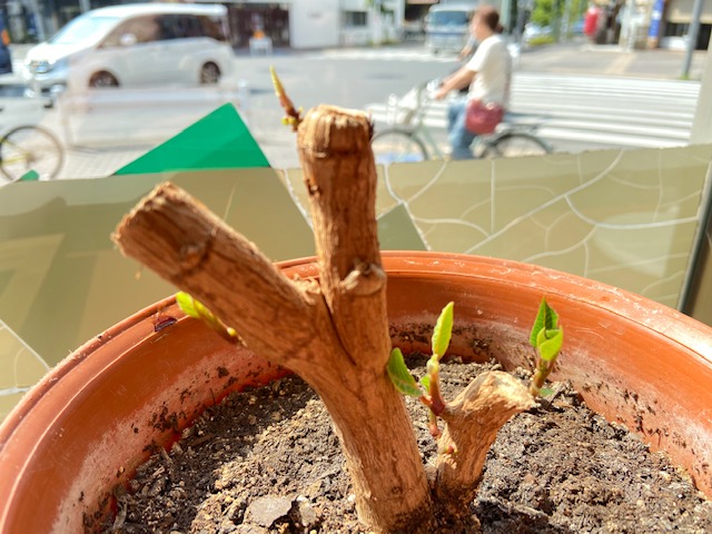 ちょっと前から新芽が出始めて、ここ2〜3日で